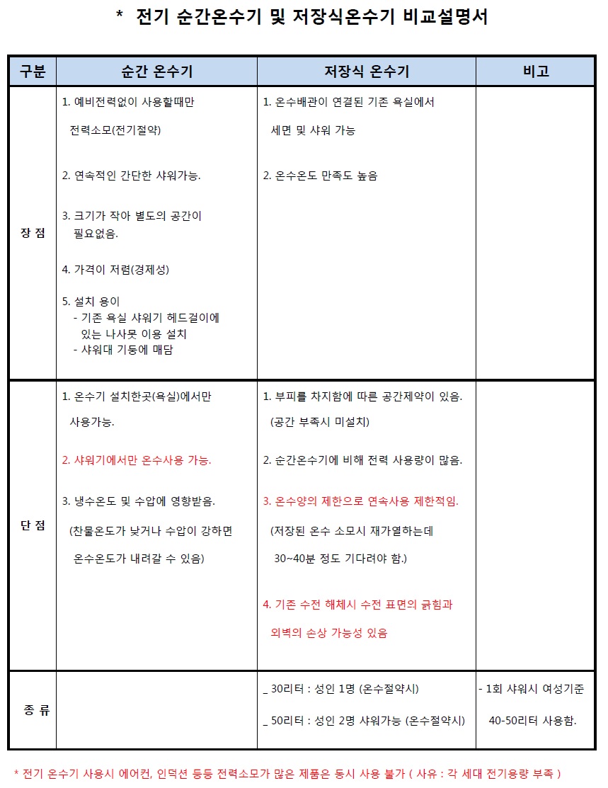 ¼ø°£½Ä/ÀúÀå½Ä Àü±â¿Â¼ö±â ºñ±³¼³¸íÇ¥